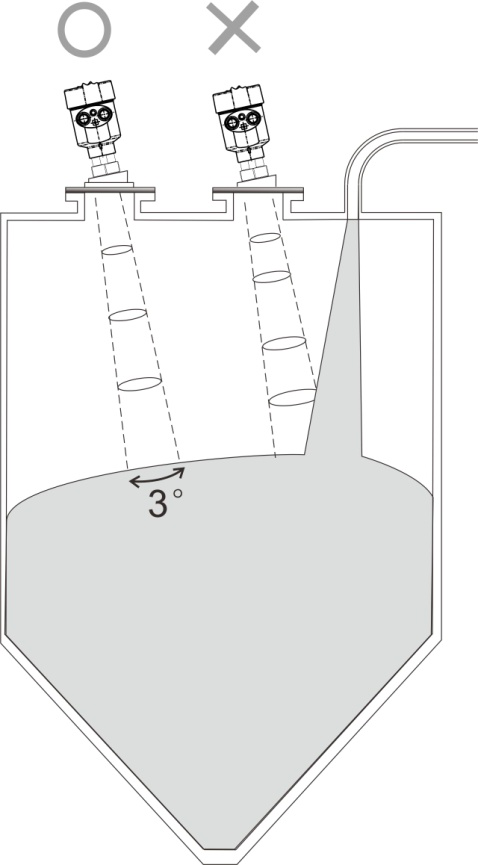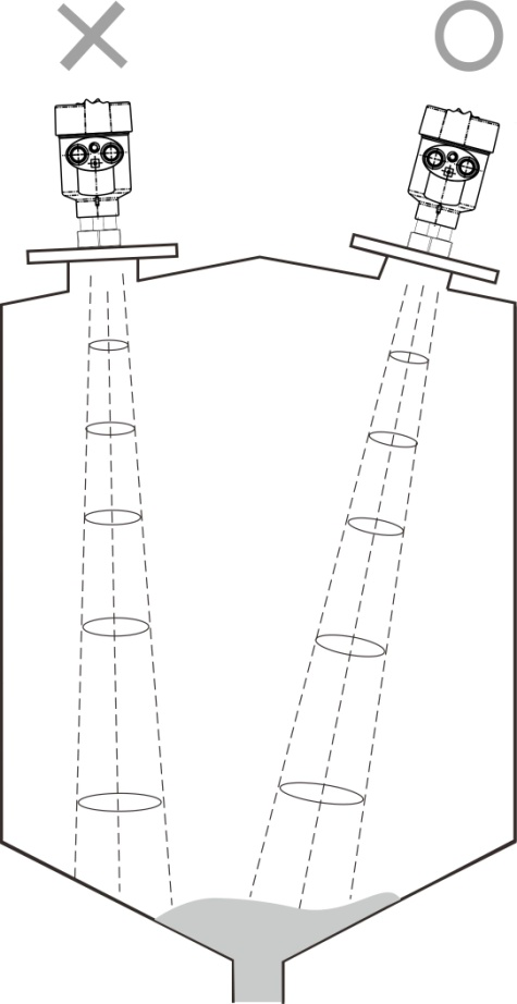 锥型容器尽量保证波束直射罐底,否则在罐底的测量结果可能不准确。