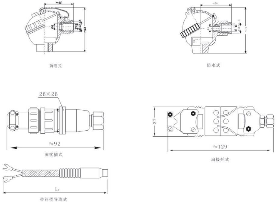 防水式铠装热电阻、圆接插式铠装热电阻、扁接插式铠装热电阻、补偿导线式铠装热电阻