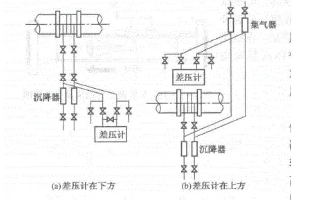 4、当测量气体流量时,测压孔开在管道的上半部,差压变送器应安得高于孔板。当无法满足此要求时,须在导压系统最低处加冷凝和放水阀,以保证导压管内没有液体。